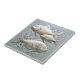 This coastal ceramic tile features three beautiful opalescent fish surrounded by an intricate arrangement of swirling sea grass and bubbles. The soft, dusty blue background is lightly textured giving it an aged patina perfect for beach homes, nautical décor themes, accent walls, backsplashes, and decorative coastal projects. Note: design may contain generative content.