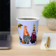 Das Feature dieser lustigen Kids' halloween-Tassen ist ein Bild von drei lustigen Zwergen, die in ihrer Halloween-Kleidung gekleidet sind und jeweils unterschiedliche Hüte haben. Neben ihnen sind ein Jack o' Laterne, eine schwarze Katze, ein vollgelber Mond mit einer fliegenden Fledermaus und ein Baum. Ihr benutzerdefinierter Text ist in schwarzer Typografie auf einer Seite enthalten; Sie sagen, was Sie wollen!