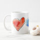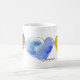 Drei Aquarellherzen auf einer Kaffeemaschine Tasse. Gelb, blau und hell rot. PERSONALISIEREN, indem Sie auf die Schaltfläche Anpassen klicken. Fügen Sie Ihre eigene benutzerdefinierte Nachricht, wählen Sie aus mehreren Schriftart, von formell bis lässig. Ändern Sie den Stil der Tasse, erhalten Sie Akzent-Farben oder die Hitze verschwindet Tasse.