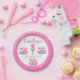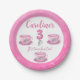 Three It’s Time for Tea 3rd Birthday paper plate. This adorable illustration is perfect for your sweet little girl’s third birthday party. Gather up your family and friends and celebrate the third year. Sweet soft pastel and blush pink surround a teacups and balloons. Get out the tea set and add some pink lemonade. Let your girl be a hostess on her special day. Let her serve the “tea” and the cake. This par-tea is bound to be sweet.