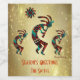 Karo Out My ~ "CHRISTMAS STORE" ~...www.zazzle.com/holidayvisions! Personalisieren Sie dieses "Eine von einer Art" Südwestwein-Label! Es bietet drei südwestliche Kokopelli Tanz und das Spiel der Flute unter der Sonne auf einem goldenen Weihnachtsgebirge! Dies ist ein Original Art Design von Künstler Kerry Miller.