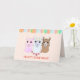 Drei Lamas und Ballons auf Korallen Geburtstagskarte. Alle Texte können personalisiert sein.