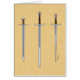 Ein Schwert aus der Normandie mit einem brasilianischen Nussbaum, ein langblattes "Großes Schwert" oder "Kriegsschwert" aus dem 13. oder 14. Jahrhundert und ein scharf spitzes, turbulentes Schwert aus dem Späten Mittelalter erscheinen in dieser originalen Illustration von Richard H. Fay nebeneinander.