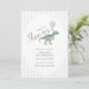 Stomp on over for a dino good time with this “Three Rex” birthday invitation featuring a watercolor green T-rex with a balloon and soft blue striped background. Perfect for boys who love dinosaurs. Personalize all text for an unforgettable prehistoric birthday celebration.