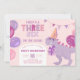 Three Rex Girl Invitation. T-Rex 3rd Birthday Einladung