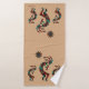 Mit diesem einzigartigen "One of a Kind" Set im Südwesten Kokopelli Badetuch dekorieren Sie Ihr Bad! Drei südwestliche Kokopelli spielen Flute und tanzen unter der Sonne auf einem Tan Hintergrund! Dieses Kokopelli Handtuch Set hat eine Matching Bath Mat und Duschvorhang.