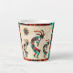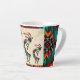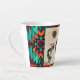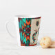 Dies ist eine einzigartige "Eine von einer Art" Südwest Kokopelli Latte Tasse! Drei Kokopelli spielen die Flute und tanzen unter der Sonne auf einem Sandsteinhintergrund...Umgeben von einer Südwestgrenze in Türkis, Orange & Schwarz. Original Art Design von Künstler Kerry Miller.
