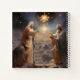 A majestic and spiritual scene featuring three wise men in flowing robes and crowns, gathered under a brilliant starburst of golden light in the night sky. The radiant star illuminates the mountains and clouds below, symbolizing guidance, faith, and divine presence. The artwork glows with warmth and reverence, creating a sense of awe and peace