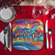These Christmas paper plates feature a stunning abstract design of the three wise men journeying on camels under the Star of Bethlehem. Reminiscent of stained glass, it showcases a vibrant blend of colors and bold lines that create a sense of movement and wonder. The radiant Star of Bethlehem draws the eye, symbolizing guidance and hope. These disposable plates are ideal for those who appreciate unique, artistic holiday designs and are the perfect choice for those who enjoy colorful and modern interpretations of traditional Christmas themes.