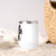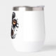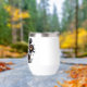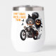 Throttle & Shadows Wine Tumbler Eine silberhaarige Zauberin brüllt durch die Düsternis, ihr Bogen krönte sich mit Schädeln und ihr Grinsen wurde aus Unheil geschnitzt. Rauch spaltet von den Reifen, wie Fledermäuse zerstreuen und ein geistreicher Bestie dahinter lauert - seine Augen leuchten wie Knollen, sein Grinsen aus Albträumen gestickt. Das ist Halloween unverkettet: ein Fest der Geschwindigkeit, des Geistes und des Nervenkitzels, vorbei an der Angst mit Stil zu reiten.