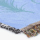 Schöne werfen Decke mit Flüstern von grünen Federn auf blauem Hintergrund.