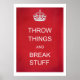 Funny Satire des berühmten britischen Poster WW2, Keep Calm und Carry On - das Vintage Propagandaposter des britischen Weltkrieges 2 in Rot und Blau mit Kronlogo. Sein Ziel war es, die Bemühungen des Alliierten Krieges, Patriotismus und Entschlossenheit zu motivieren, gegen die Achsenmächte zu gewinnen. Aber die Zeiten haben sich geändert. Im Moment ist es Zeit, Dinge zu werfen und Dinge zu zerbrechen.