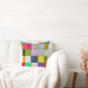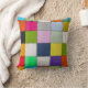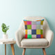 A decorative patchwork pillow with a grid of colorful squares in pink, green, blue, yellow, orange, and gray. This vibrant cushion adds a cheerful accent to minimalist furniture, making it perfect for living rooms, reading corners, or cozy interiors. A stylish blend of comfort and artistic design.