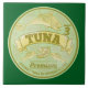 Eine Pop-Up-Art Abbildung des Deckels einer Thunfischdose. Dies ist in Vektor gezeichnet und hat das Aussehen eines Retro-Werbetafelds. Es hat Thunfisch auf ihm und wird in Zeiten von grün und gelb gezeichnet. Ein Design für alle, die Lieben Dosen / Dosen Fisch.