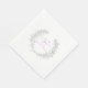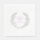 Zwei Blätter mit Thymian und Blume, die einen Kräuterkranz bilden, umkreisen Blumenservietten aus Brautparty. Bearbeiten Sie diese Brautparty-Servietten mit Ihrer eigenen Ehrenbride, um den Namen zu geben. Einzigartiges Kunstdesign von Sarah Trett.