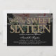 Tiara Floral Black and Gold Sweet 16 Einladung