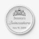 Quinceañera Papierplatte. Stilvolles modernes minimalistisches Schwarz-Weiß-Design mit Tiara. In unserem Shop sind weitere Artikel in diesem Stil erhältlich. Sie können das Design weiter bearbeiten, die Hintergrundfarbe ändern, Schriftart hinzufügen und durch Klicken auf den Link "Weiter" den Text anpassen.