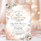 Moderne, schicke und glamouröse QUINCEAÑERA mit eleganter silberner Tiara und weißer Blume auf Aquarellfarben.