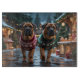 This festive design captures the joyful spirit of the holiday season, featuring an adorable dogs.Nestled in a winter wonderland, complete with a decorated Christmas tree, and beautifully wrapped presents. Snowflakes gently fall, adding a magical touch to the scene, while the vibrant colors of the holiday decorations create a warm and cheerful atmosphere.