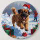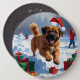 Tibetan Mastiff läuft mit Weihnachtsmut im Schnee Button