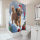 Tibetan Mastiff läuft mit Weihnachtsmut im Schnee Duschvorhang