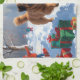 Tibetan Mastiff läuft mit Weihnachtsmut im Schnee Geschirrtuch