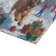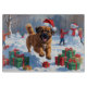 Ein mächtiger tibetischer Mastiff läuft durch die schneebedeckte Winterszene und trägt einen festlichen roten Weihnachtsmütze. Dieses kühne Design unterstreicht die massive Bauweise der Rasse, den dicken Mantel und die schützende Natur und erweckt gleichzeitig die Wärme und Freude der Ferienzeit. Ein wahres Wintererlebnis voller festlichen Charme.