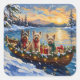 Tibetan Terrier Christmas Boat Holiday Quadratischer Aufkleber