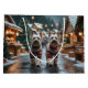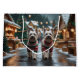 This festive design captures the joyful spirit of the holiday season, featuring an adorable dogs.Nestled in a winter wonderland, complete with a decorated Christmas tree, and beautifully wrapped presents. Snowflakes gently fall, adding a magical touch to the scene, while the vibrant colors of the holiday decorations create a warm and cheerful atmosphere.