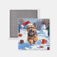 Tibetan Terrier läuft mit Weihnachtshut im Schnee Magnet
