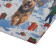 Tibetan Terrier läuft mit Weihnachtshut im Schnee Schneidebrett