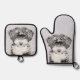 Tibeter Terrier Painting Black and White Dog Art Ofenhandschuh & Topflappen-Set