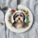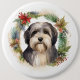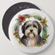 Tibeter Terrier Weihnachtskranz Festliche Jungfrau Button