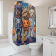 Tibetische Hunde Spaniens zu Halloween-Kostümen Duschvorhang