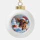 Tibetischer Spanier, der mit Weihnachtshut in Schn Keramik Kugel-Ornament