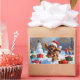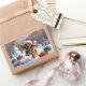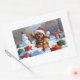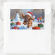 Tibetischer Spanier, der mit Weihnachtshut in Schn Rechteckiger Aufkleber