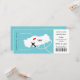 Eine lustige, aber stilvolle Hochzeitseinladung in einem Boarding-Pass/Ticket-Stil für Paare, die im Ausland heiraten. Das zeigt sich in einer Silhouette auf der Weißen Karte auf aquamarinem Blau mit süß-roten Lieben-Herzen, Silhouette im Flugzeug und weißen Perlen, die in Herzform wirbeln. Die Rückseite des Boarding-Passes hat ein hübsches elegantes Lackmuster.