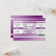 Lila und weiße Replik Ticket Stil Einladung ist vollständig anpassbar für Ihre High School oder Uni Konzert oder Open House. Benutzen Sie es für eine Graduiertenparty oder für jede Veranstaltung. Hintergrund mit weißen Trennflächen und Abschnitten, mit einem Computer drucken digitaler Text im Stil.