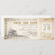 Save the Date Kreuzfahrten Boarding Tickets mit alten Schiffs-Design.