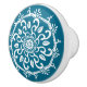 Dieses weiße Mandala sitzt auf einem aquamarinen Hintergrund. Die Farben sind sehr beruhigend und friedlich. Teil der Payon Mandala Kollektion.