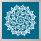 Dieses weiße Mandala sitzt auf einem aquamarinen Hintergrund. Die Farben sind sehr beruhigend und friedlich. Teil der Brosya Mandala Kollektion.