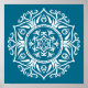 Dieses weiße Mandala sitzt auf einem aquamarinen Hintergrund. Die Farben sind sehr beruhigend und friedlich. Teil der Rosenn Mandala Kollektion.