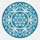 Dieses weiße Mandala sitzt auf einem aquamarinen Hintergrund. Die Farben sind sehr beruhigend und friedlich. Teil der Rosenn Mandala Kollektion.