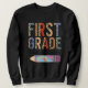 Tie Dye First Grade Teacher Leopard Pencil Back To Sweatshirt
