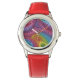 Kinderuhr aus Edelstahl mit rotem Lederarmband