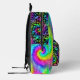 Dieser knallharte Rucksack enthält ein farbenprächtiges Wirbles Krawatte-Farbmuster in einem kräftigen Regenbogen. Die Tasche und die Oberseite des Rucksacks haben ein passendes Blumenmuster mit Krawatte-Färbung auf Schwarz. Fügen Sie Ihr individuelles Monogramm in die Tasche. Es ist ein lustiges Design mit einer Retro-Ästhetik für Hippies, die den abseits gelegenen, psychedelischen Anblick der 1960er und 70er-Bohemier ausgraben. Verwenden Sie die leicht zu personalisierende Vorlage.