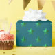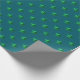 Ein festes Verpackungspapier mit dunkelblauem, aquamarinem Hintergrund und schimmernden grünen Sternen in einem Wiederholmuster.