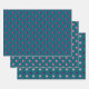 Ein festliches Set aus Papier für die Weihnachtsferien mit aquamarinem Hintergrund mit blauen, silbernen und goldenen Sternen. Ideal für jeden Anlass und macht eine eindrucksvolle Geschenkpackung.