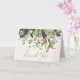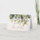 Ein schick Dankeschön unter einem drapierenden Bower aus dunkelsten lila Trauben golden, sage und schreibe grünen Blätter. Eingezeichnet mit einem einzigartigen Schriftart auf Kiesel-Print-Bild Personal Schreibpapier Karte.
