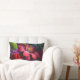 Tief gefärbte Blumenarrangements mit Vorder- und Mitte-Hibiskus mit einer Vielzahl an Grünpflanzen. Auf diesem blumengeschmückten Kissen aus Lendenholz erscheinen kräftig grün, lila und rot.